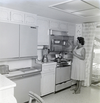 Gandy, George Skip IV, "Woman in Kitchen of Manufactured Home in Guernsey Estates, Tampa, Florida, B" (1960). Gandy Photographs - General, Culture, Politics. Image 5879.