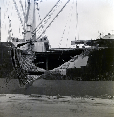 Gandy, George Skip IV, "Damaged Ship Vera Cruz Docked at Port, Tampa, Florida, H" (1960). Gandy Photographs - General, Culture, Politics. Image 5888.