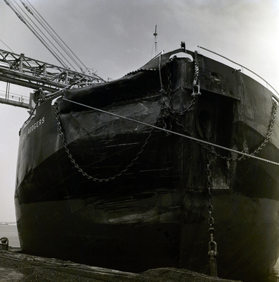 Gandy, George Skip IV, "Bow of Damaged Cargo Ship Deloris Rodgers, Tampa, Florida, C" (1960). Gandy Photographs - General, Culture, Politics. Image 5895.