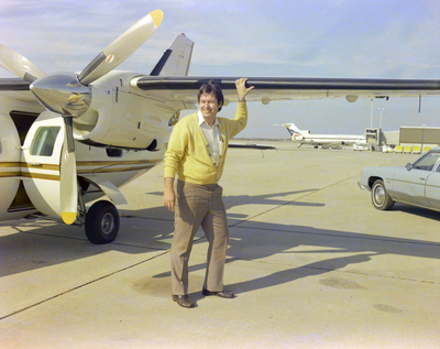 Gandy, George Skip IV, "Man Standing Next to Mitsubishi MU-2 Aircraft on Tarmac, A" (1970). Gandy Photographs - General, Culture, Politics. Image 5934.