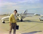 Gandy, George Skip IV, "Man Holding Briefcase Near Mitsubishi MU-2 Aircraft on Tarmac, A" (1970). Gandy Photographs - General, Culture, Politics. Image 5936.