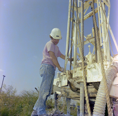 Gandy, George Skip IV, "Worker Operating Drilling Rig at Dry Dock in Tampa, Florida" (1976). Gandy Photographs - General, Culture, Politics. Image 6008.