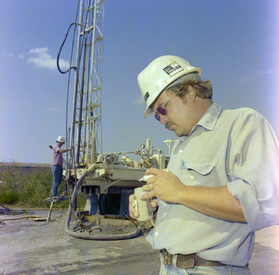 Gandy, George Skip IV, "Worker Inspecting Core Sample at Dry Dock in Tampa, Florida" (1976). Gandy Photographs - General, Culture, Politics. Image 6009.
