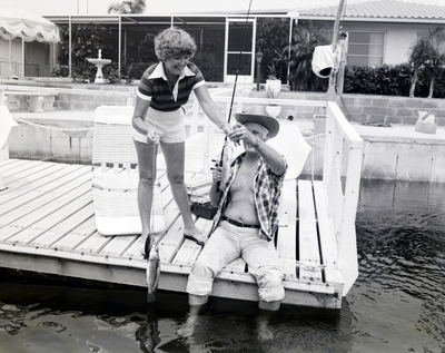 Gandy, George Skip IV, "Two People Fishing from Dock at Gulf Harbors Condominiums, New Port Richey, Florida, G" (1970). Gandy Photographs - General, Culture, Politics. Image 6078.