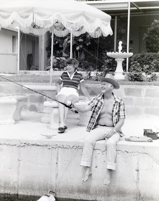Gandy, George Skip IV, "Couple Fishing from Patio at Gulf Harbors Condominiums, New Port Richey, Florida, A" (1970). Gandy Photographs - General, Culture, Politics. Image 6091.
