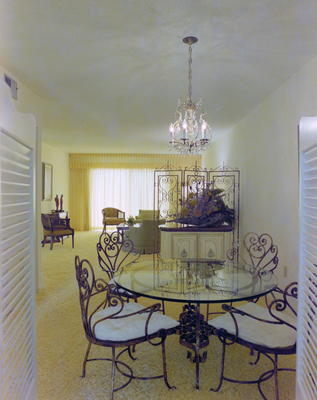 Gandy, George Skip IV, "Dining Room and Living Space at Gull Harbor Apartments, Redington Shores, Florida, B" (1970). Gandy Photographs - General, Culture, Politics. Image 6126.