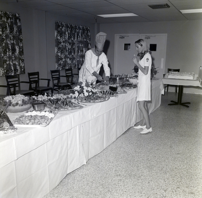 Gandy, George Skip IV, "Chef Heemstra and Nurse at Buffet in Habana Plaza Nursing Center, Tampa, Florida, C" (1970). Gandy Photographs - General, Culture, Politics. Image 6168.