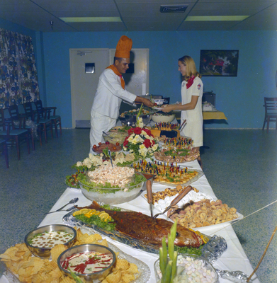 Gandy, George Skip IV, "Chef Heemstra Serving Food to a Nurse at Habana Plaza Nursing Center, Tampa, Florida, A" (1970). Gandy Photographs - General, Culture, Politics. Image 6184.