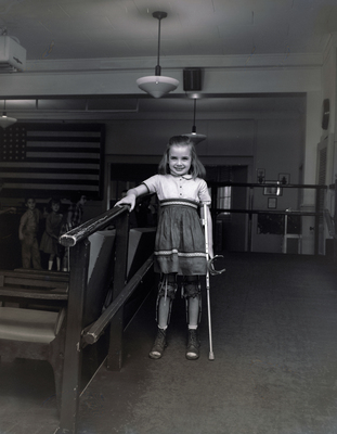 Gandy, George Skip IV, "Young Girl with Leg Braces at Hillsborough County Society for Crippled Children, Tampa, Florida" (1960). Gandy Photographs - General, Culture, Politics. Image 6207.