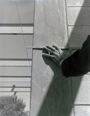 Gandy, George Skip IV, "Measuring a Concrete Column at Construction Site" (1960). Gandy Photographs - General, Culture, Politics. Image 6255.