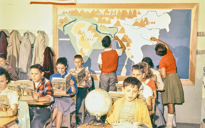 Gandy, George Skip IV, "Geography Lesson in Elementary School Classroom, Tampa, Florida" (1960). Gandy Photographs - General, Culture, Politics. Image 6260.