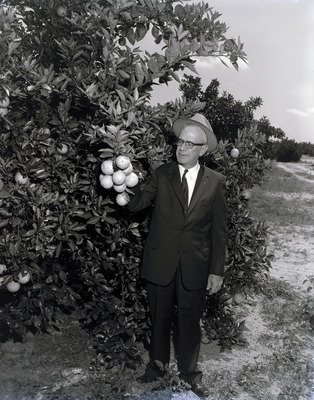 Gandy, George Skip IV, "Man Inspecting Citrus Grove, Tampa, Florida" (1960). Gandy Photographs - General, Culture, Politics. Image 6278.