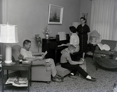 Gandy, George Skip IV, "Family in Living Room with Piano, Tampa, Florida" (1960). Gandy Photographs - General, Culture, Politics. Image 6289.