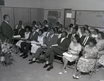 Gandy, George Skip IV, "Man Speaking to Seated Audience at Community Meeting, Tampa, Florida" (1960). Gandy Photographs - General, Culture, Politics. Image 6293.
