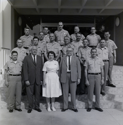 Gandy, George Skip IV, "Office Employees Standing outside Workplace, Tampa, Florida, A" (1960). Gandy Photographs - General, Culture, Politics. Image 6310.