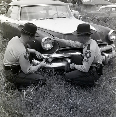 Gandy, George Skip IV, "Deputies Inspecting a Vehicle, Hillsborough County, Florida, B" (1960). Gandy Photographs - General, Culture, Politics. Image 6318.