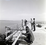 Men and women standing on the roof of the Howell Park Condominiums, observing below.