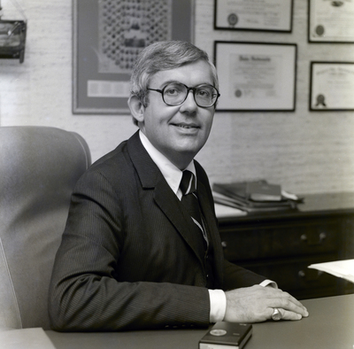 A portrait of Sonny Everett of Frank B. Hall Incorporated in an office. The physical sleeve of the negative reads, "Sonny Everett of Frank B. Hall, Inc. Lincoln C.".