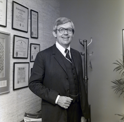 A portrait of Sonny Everett of Frank B. Hall Incorporated in an office. The physical sleeve of the negative reads, "Sonny Everett of Frank B. Hall, Inc. Lincoln C.".