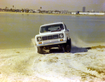 A modified International Harvester Scout with custom branding for "Snatch-Um-Straps" by the Tampa-based company Ever-Wear Products.