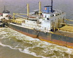 The "Banglar Baani" commercial vessel with severe midship superstructure damage docked at a port.