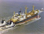 Gandy, George Skip IV, "Banglar Baani Bulk Carrier with Tugboat Escort, N" (1970). Gandy Photographs - General, Culture, Politics. Image 7102.