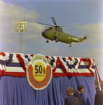 A USMC Helicopter flies above Al Lopez Field during President John F. Kennedy's visit to Tampa.