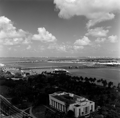 Gandy, George Skip IV, "Construction of First National Bank of Miami Using Rebar and Cranes, D" (1970). Gandy Photographs - Aerials. Image 396.