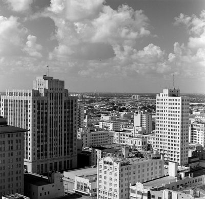 Gandy, George Skip IV, "Construction of First National Bank of Miami Using Rebar and Cranes, G" (1970). Gandy Photographs - Aerials. Image 398.