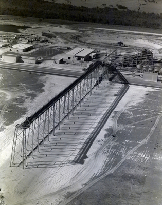 An aerial view of a phosphate plant in Fort Lauderdale, Florida, undergoing construction by the Florida Steel Corporation.