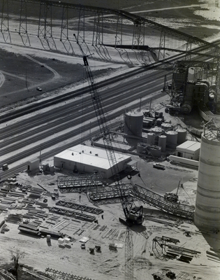 An aerial view of a phosphate plant in Fort Lauderdale, Florida, undergoing construction by the Florida Steel Corporation.
