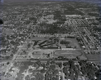 Gandy, George Skip IV, "Aerial View of a High School and Surrounding Neighborhoods, Tampa, Florida" (1960). Gandy Photographs - Aerials. Image 477.