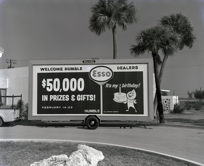 Gandy, George Skip IV, "Humble Oil and Refining Company Birthday Sign" (1963). Gandy Photographs - Commercial. Image 10051.