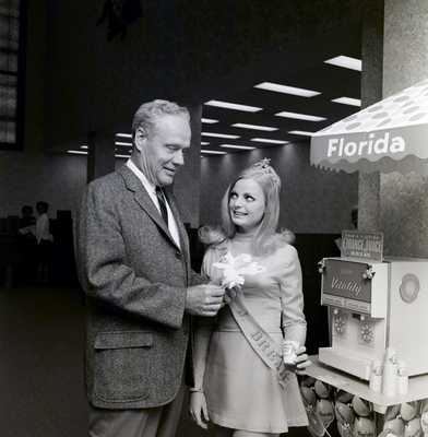 Gandy, George Skip IV, "Exchange National Bank Florida Orange Juice Dispenser, Tampa, A" (1960). Gandy Photographs - Commercial. Image 10465.