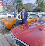Gandy, George Skip IV, "Man and Woman View Pontiac at Lot, Exchange National Bank" (1970). Gandy Photographs - Commercial. Image 10609.