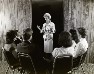 Gandy, George Skip IV, "Woman Talking to the Employees at Magic Systems, A" (1970). Gandy Photographs - Commercial. Image 10971.