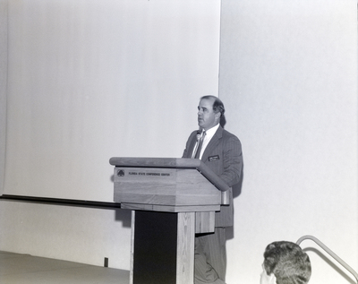 Gandy, George Skip IV, "Dennis Fitzgerald Speaks at Podium, First Florida Bank Event, B" (1986). Gandy Photographs - Commercial. Image 4658.
