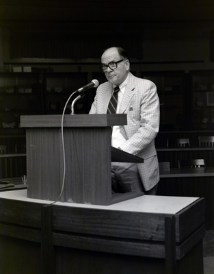 Gandy, George Skip IV, "Employee Presents at Podium, First Florida Bank Event, A" (1986). Gandy Photographs - Commercial. Image 4671.