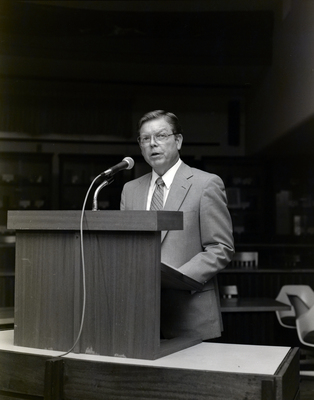 Gandy, George Skip IV, "Employee Presents at Podium, First Florida Bank Event, B" (1986). Gandy Photographs - Commercial. Image 4672.