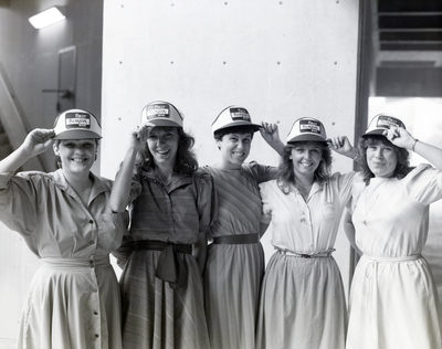 Gandy, George Skip IV, "Five First Florida Bank Employees Wearing Company Visors" (1986). Gandy Photographs - Commercial. Image 4701.