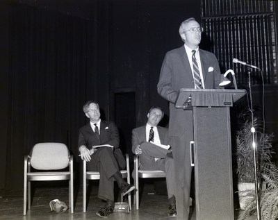 Gandy, George Skip IV, "Employee Presents on Stage, First Florida Bank, Clearwater, A" (1986). Gandy Photographs - Commercial. Image 4741.