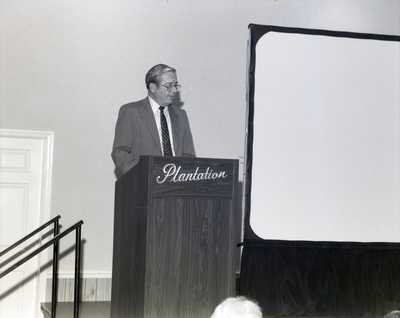 Gandy, George Skip IV, "Employee Presents on Stage, First Florida Bank, Crystal River, A" (1986). Gandy Photographs - Commercial. Image 4753.