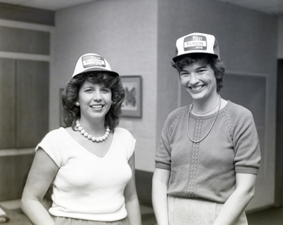 Two First Florida Bank, Fort Myers branch, employees wearing company hats.
