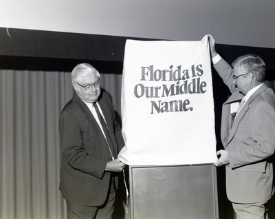 Gandy, George Skip IV, "Two Employees Unveil First Florida Bank Sign, Fort Myers, A" (1986). Gandy Photographs - Commercial. Image 4830.