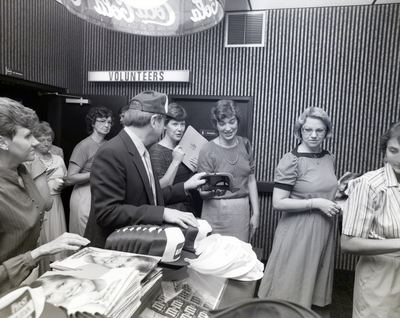 Gandy, George Skip IV, "Employee Hands out Merchandise, First Florida Bank, Fort Myers" (1986). Gandy Photographs - Commercial. Image 4838.