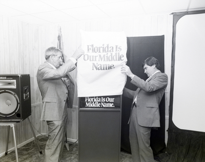 Gandy, George Skip IV, "Employees Unveil Sign, First Florida Bank, A" (1986). Gandy Photographs - Commercial. Image 4893.