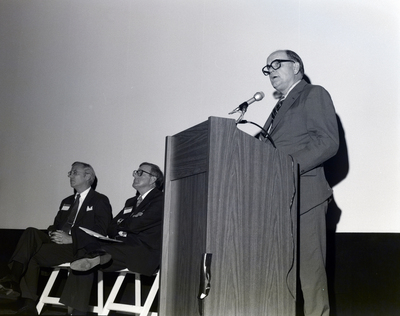Gandy, George Skip IV, "Dan Murphy, John Wulburn, and Frank DiMarco on Stage, First Florida Bank, Tampa Branch, A" (1985). Gandy Photographs - Commercial. Image 4914.