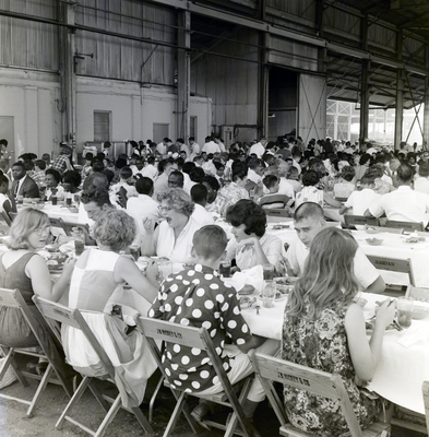Gandy, George Skip IV, "Attendees Dine at Tables Under Metal Structure, Florida Steel, A" (1960). Gandy Photographs - Commercial. Image 5022.