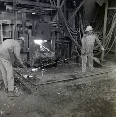 Gandy, George Skip IV, "Florida Steel Employee Uses Metal Rod to Handle Hot Substance, C" (1960). Gandy Photographs - Commercial. Image 5343.