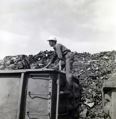 Gandy, George Skip IV, "Employee in a Scrapyard, Florida Steel, B" (1960). Gandy Photographs - Commercial. Image 5346.